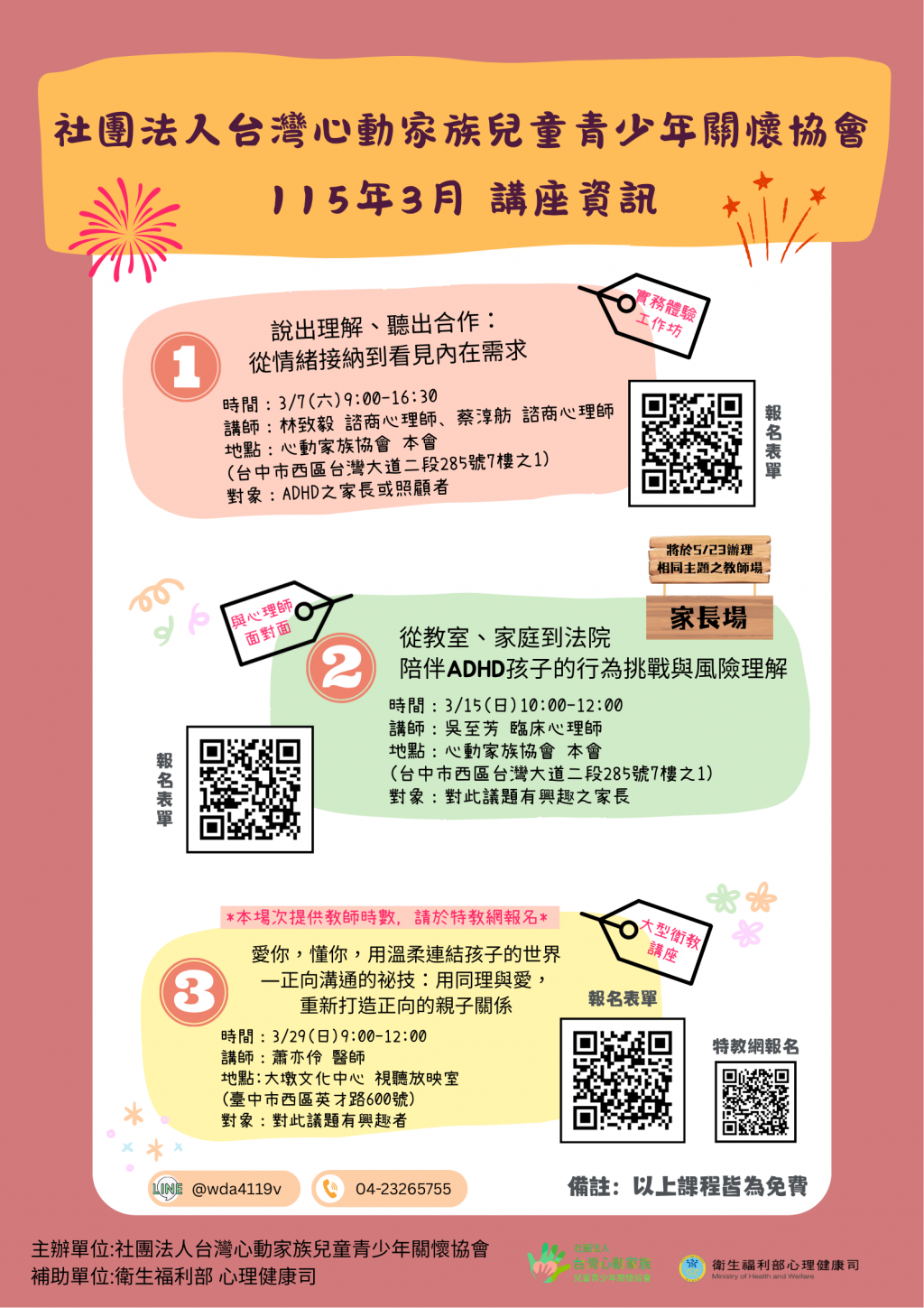115年03月 ADHD 相關主題講座及工作坊